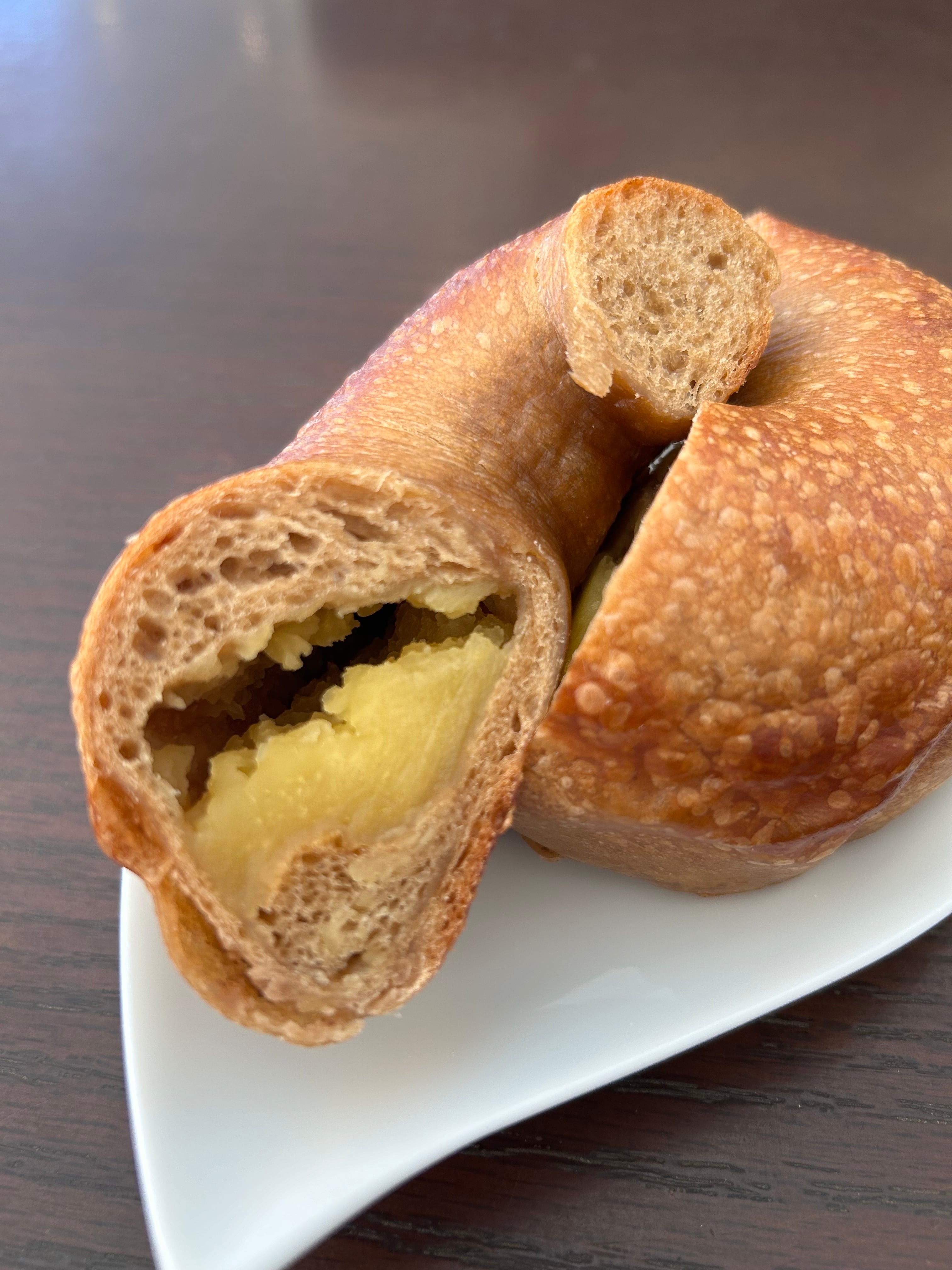 コーヒー豆乳生地に渋皮・粒入り、2種類の栗のあんが入っています