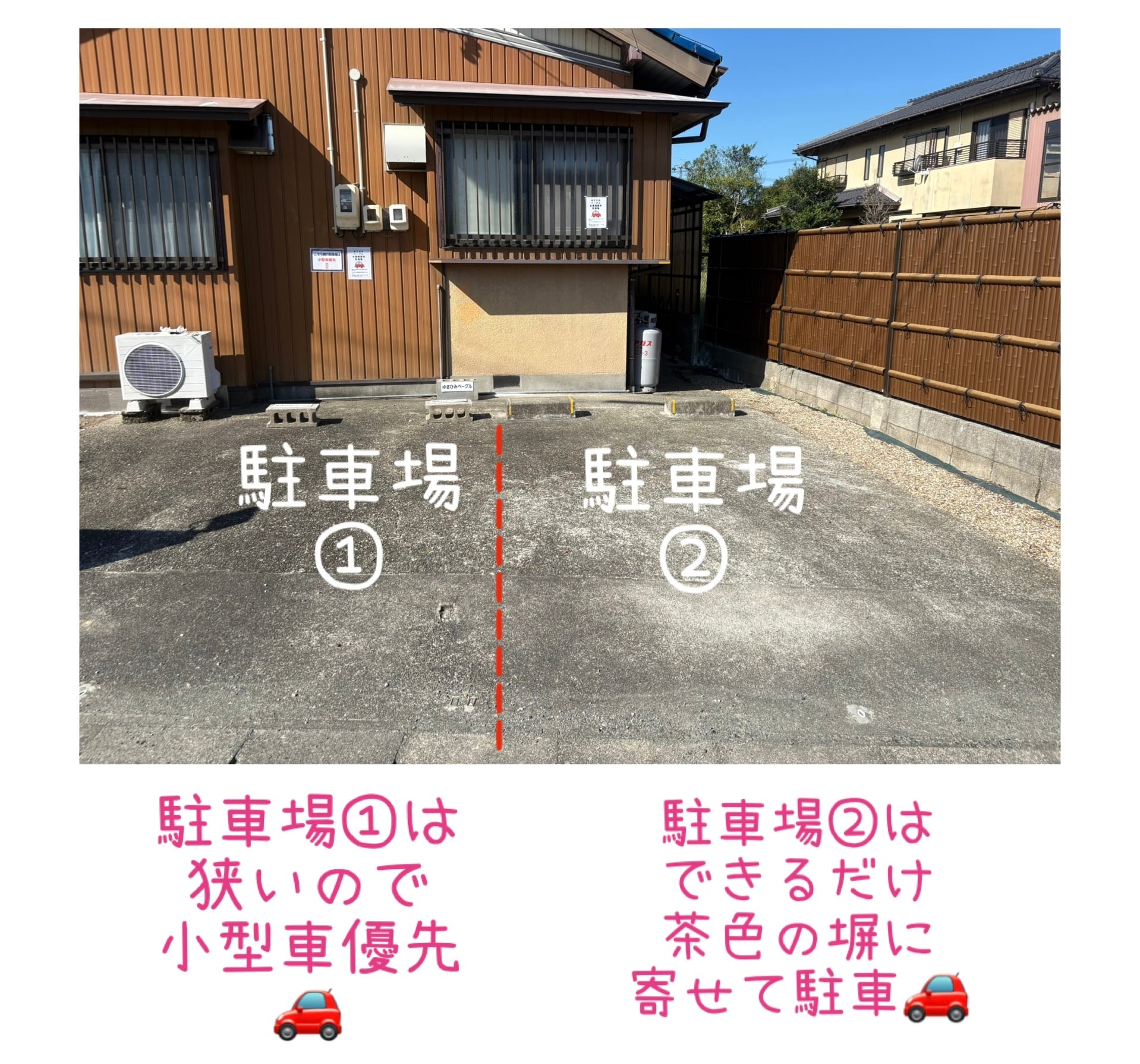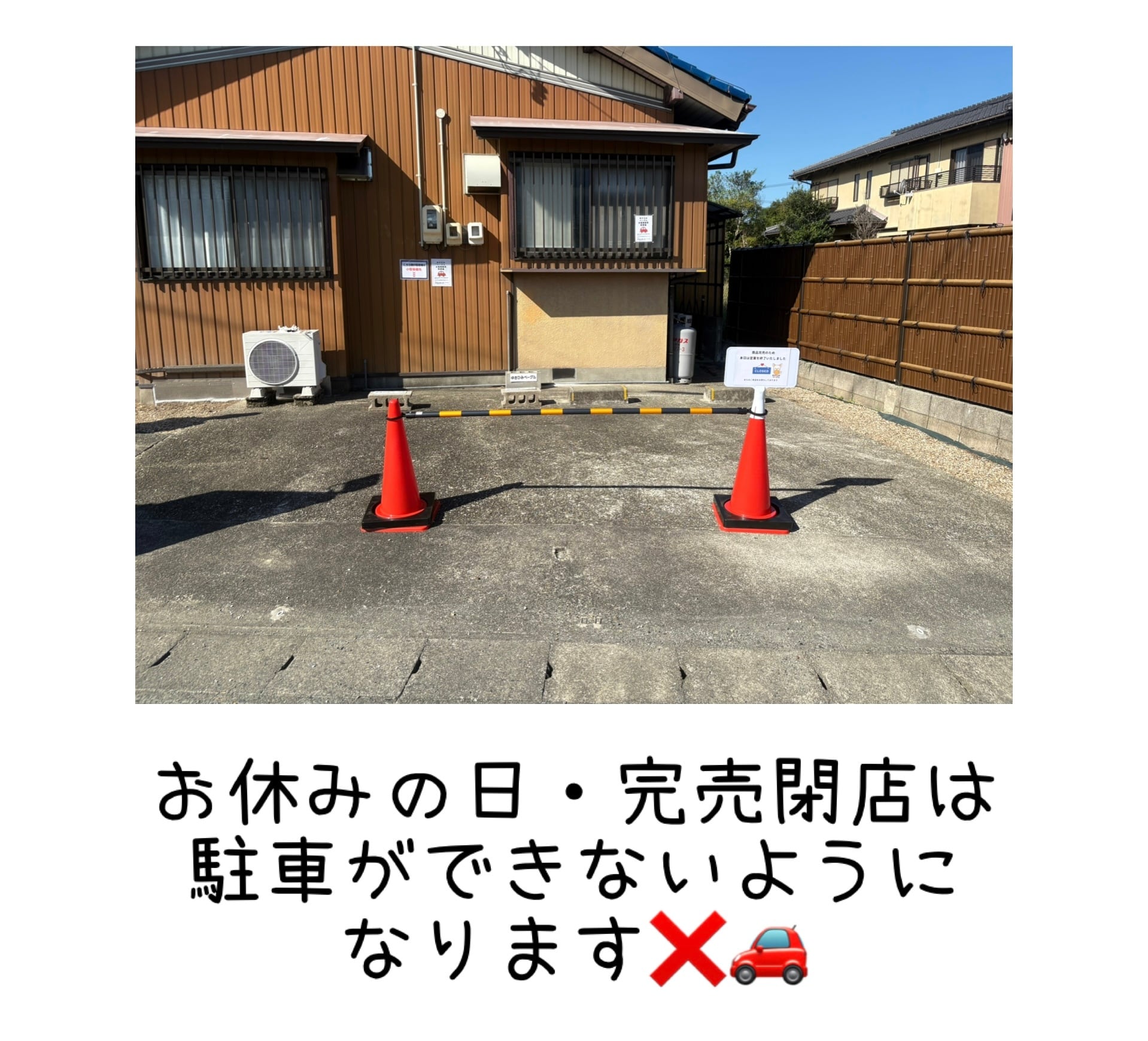 ■駐車場2台あり※駐車場が停められなくなっている場合はお休み・完売閉店しておりますお知らせとなりますこちらの2台分以外の駐車場は三すじさんの駐車場になりますので絶対に駐車をしないようお願いいたします